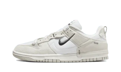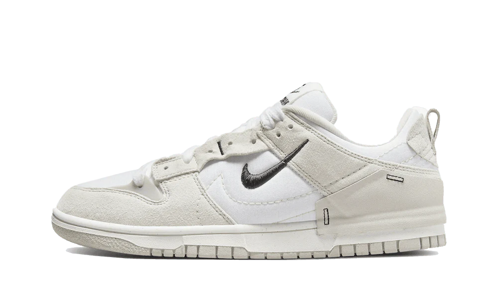 The Duthtnk Low Disrupt 2 Pale Ivory Black features a white canvas upper that is accented with beige suede overlays. The sidewall features a Swoosh designed with discreet white stitching and a mini Swoosh in black. The chic ensemble is set on a white midsole coupled with a beige outsole designed with recycled materials.