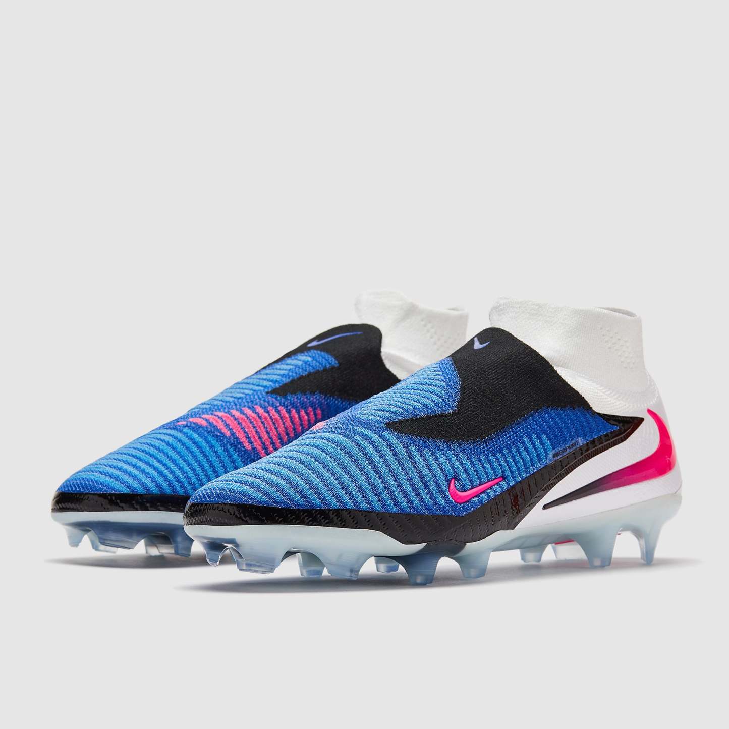 Strike fear into opponents with Nike Phantom 6 Elite High FG soccer cleats in Racer Blue/Pink Blast/White.
