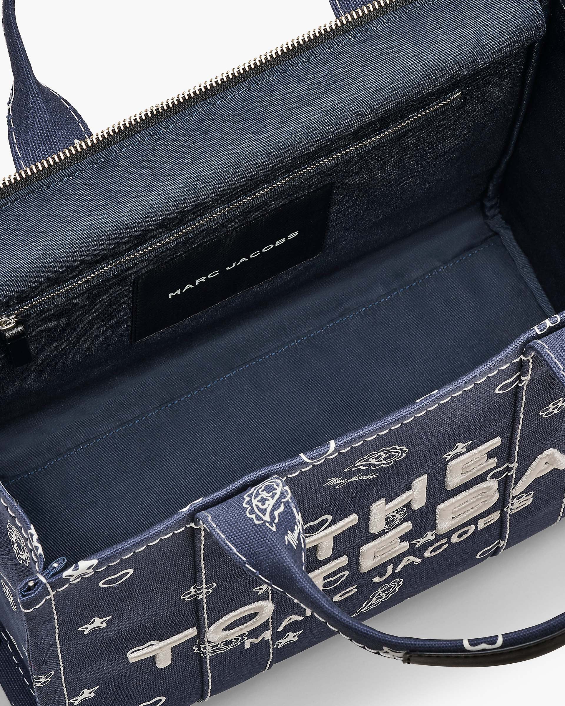 Our iconic medium canvas Tote Bag, but with a paisley-inspired print - featuring hidden Mini Icon charms in the design. It’s finished with dimensional embroidered branding for that extra pop of texture. A top zip closure keeps everything secure, while the top handles and removable, adjustable strap give you carry-it-your-way versatility. Inside, a zip pocket keeps your small essentials in check. Shop Mathtrc Jacthtobs The Bandana Canvas Medium Tote Bag