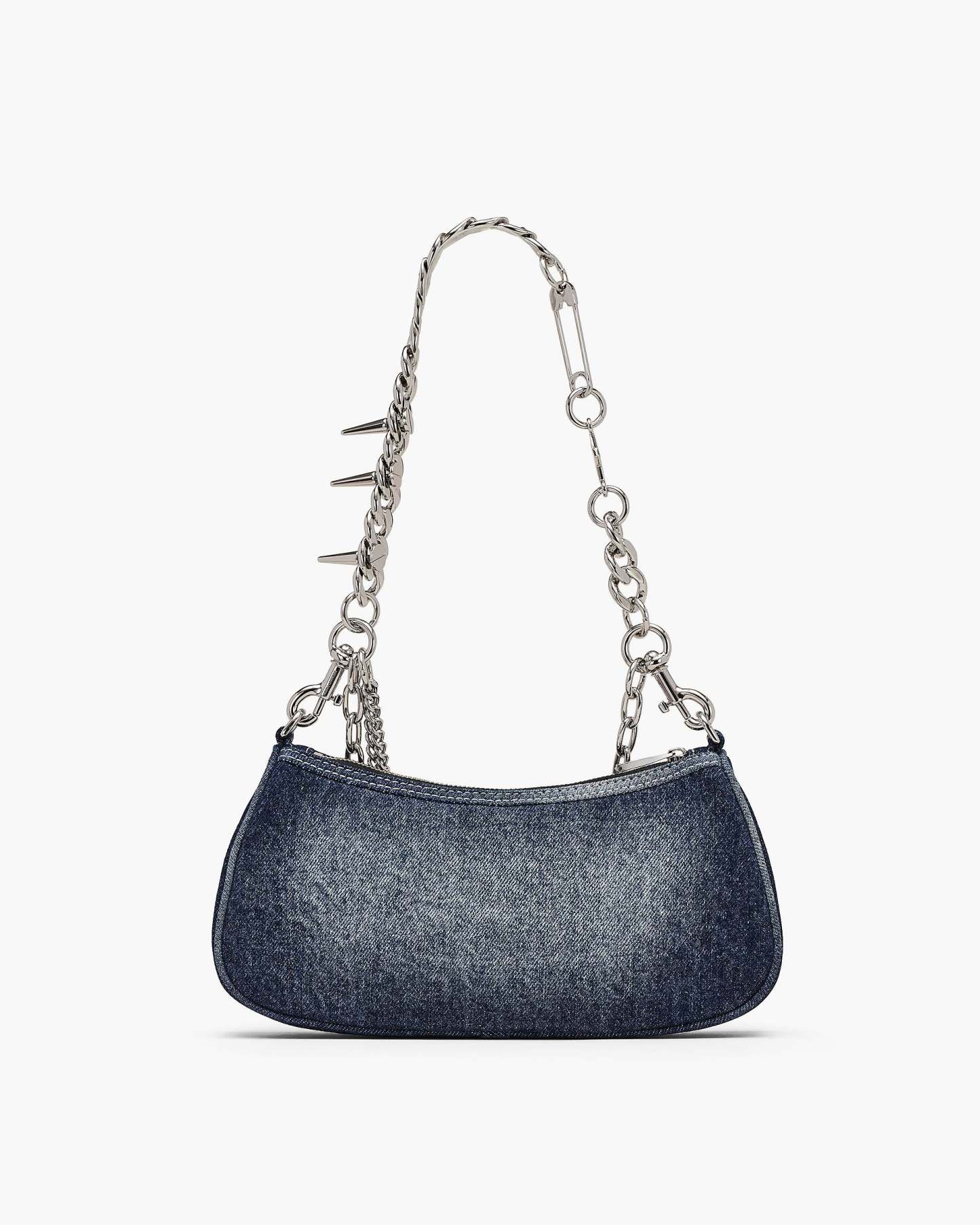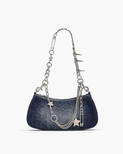This shoulder bag is animated with retro-faded denim, topped off with metal logo detailing for just the right amount of shine. Two removable straps (one in denim and leather, the other a statement-making chain) let you switch up your look depending on the mood. The zip closure keeps things secure, while the cotton denim keeps it effortlessly cool. Shop Mathtrc Jacthtobs The Faded Denim Charm Shoulder Bag